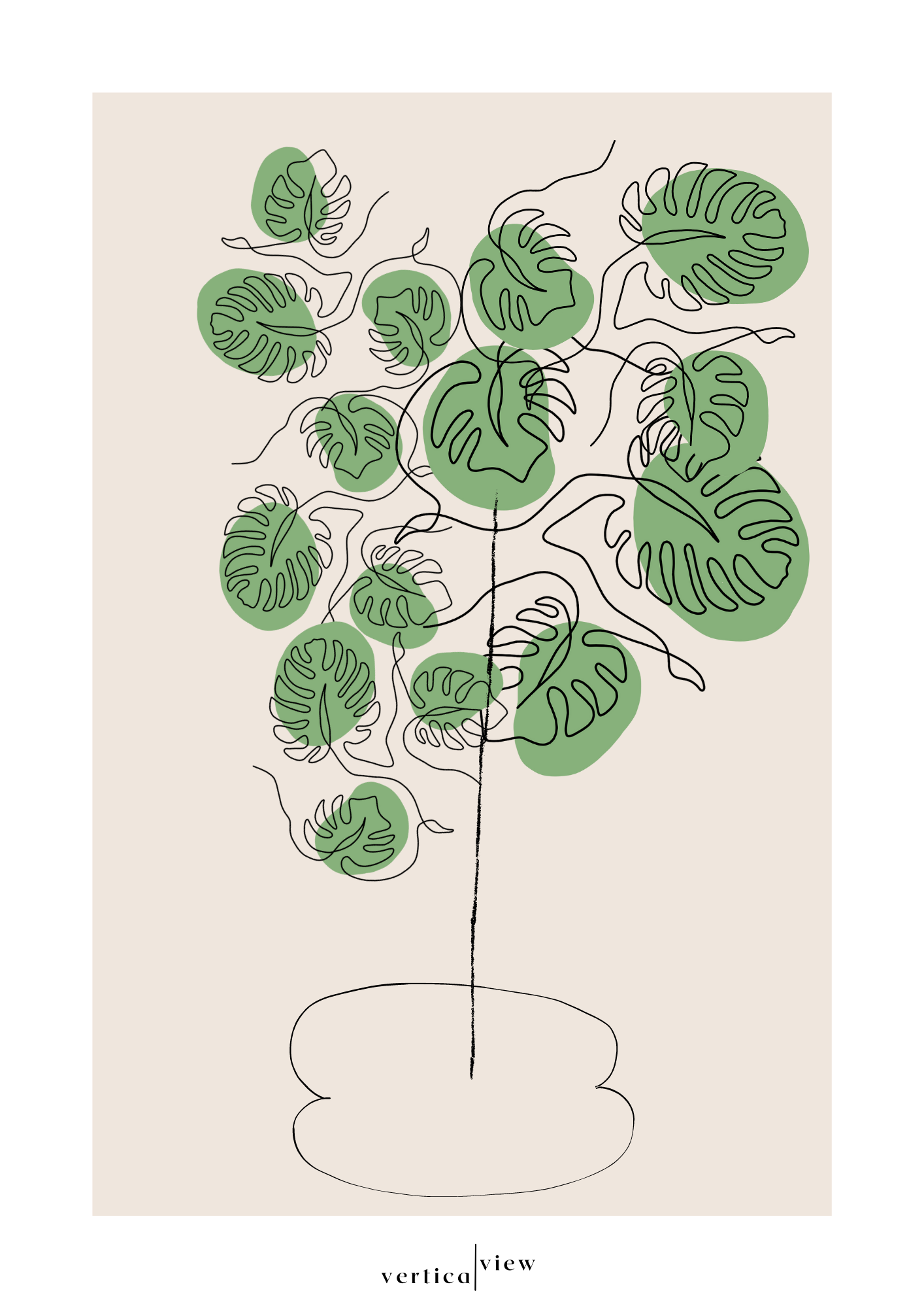 Monstera er en populær plante med finurlige hullede blade. Med denne plakat kan planten nu også pynte grafisk på væggen. Monstera plakaten er designet i rolige pastel farver, der er lette at kombinere med andre plakater til en unik billedvæg.